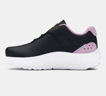 Scarpe bambina Under Armour GINF Surge 4 AC, scarpe da corsa con ammortizzazione EVA, tomaia in mesh traspirante, chiusura a strappo, suola in gomma resistente e design leggero per comfort e agilità.