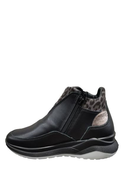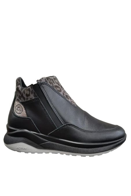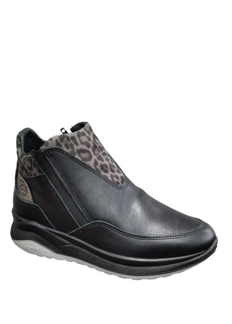 Scarpe Grisport da donna in morbida pelle nera con elastici laterali e cerniera sul lato interno per una miglior calzata. Fodera realizzata in Gritex che la rende idrorepellente.