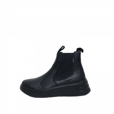 Scarpe Grisport da donna in morbida pelle nera con elastici laterali per una miglior calzata, fodera realizzata in Gritex che la rende idrorepellente.