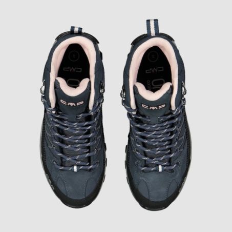 Scarponcino CMP CAMPAGNOLO alto da trekking Rigel Mid Wp Wmn da donna waterproof ideale su tutte le superfici, asciutte e bagnate, grazie alla struttura e alla mescola della suola CMP FullOn GRIP. Assicura il massimo del comfort e stabilità grazie al supporto alla caviglia e al fascione protettivo in kevlar.