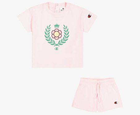 Set baby Champion offre comfort e resistenza composto da pantaloncino e t-shirt.