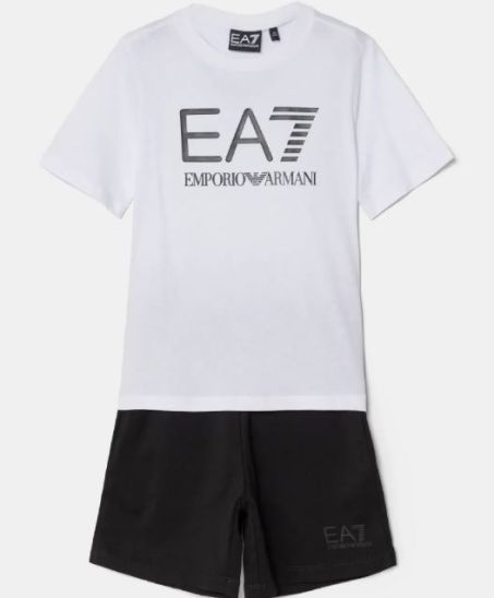 Set Bambino EA7 Emporio Armani T-shirt Pantaloncino 7B000043 M0003 Bianco Nero