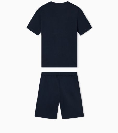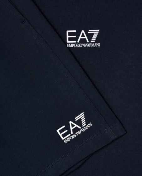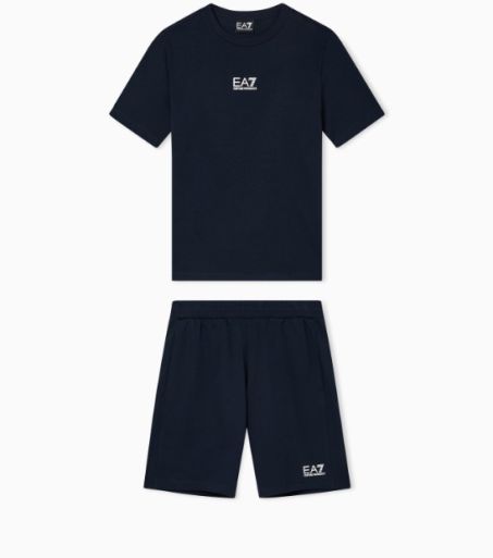 Pratico e versatile set composto da t-shirt girocollo e shorts, realizzati in morbido jersey di cotone. Una proposta perfetta per il tempo libero, personalizzata dal logo EA7 a contrasto.