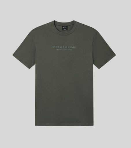 Dettaglio logo Armani Exchange Milano / New York lettering tono su tono sul petto