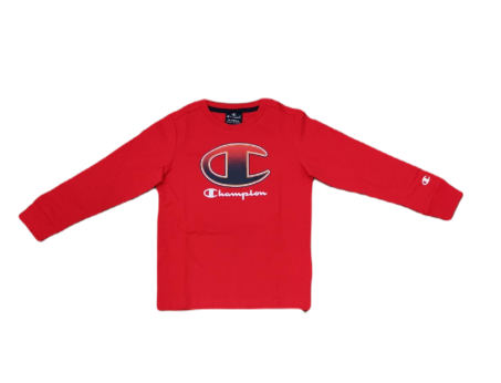 T-shirt Bambino Champion in cotone manica lunga. Il modello girocollo è personalizzato da un logo stampato sul petto. Ideale per un uso quotidiano.
