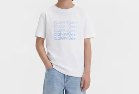 T-shirt Calvin Klein bambino con logo multiplo sul davanti, girocollo e in tinta unita