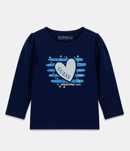 T-shirt GUESS bambina girocollo manica lunga in misto cotone. Vestibilità regolare con logo strass sulla parte centrale
