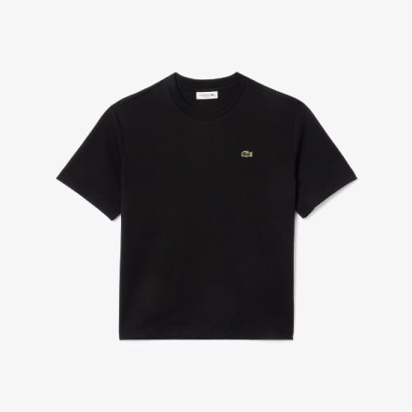 T-Shirt donna Lacoste morbidissima in jersey realizzata in meraviglioso cotone Pima. Un vero e proprio must-have, caratterizzato da un taglio rilassato fatto apposta per muoversi insieme te e arricchito da un colletto a costine. Comfort estremo.