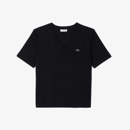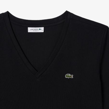 T-Shirt donna Lacoste, caratterizzata da un taglio moderno e drappeggiato con spalle scese in comodo jersey di cotone con scollo a V firmata Lacoste è non a caso un classico. Il caratteristico coccodrillo ricamato aggiunge il tocco finale.