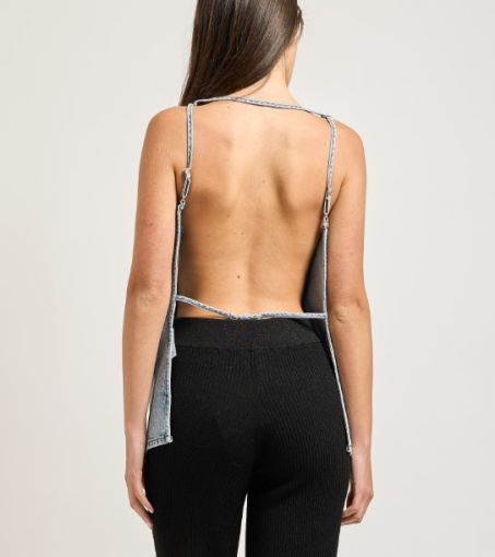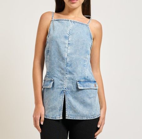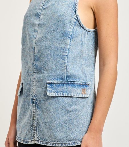 Top donna AX con spalline regolabili, tasche a patta sul davanti e un taglio centrale. Completamente aperto sul retro.