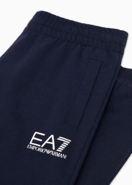 Completo bambino EA7 Emporio Armani, composto da t-shirt in cotone a manica corta, personalizzata da un logo stampato EA7 e pantaloncino. Perfetto per i momenti sportivi dei più piccoli.