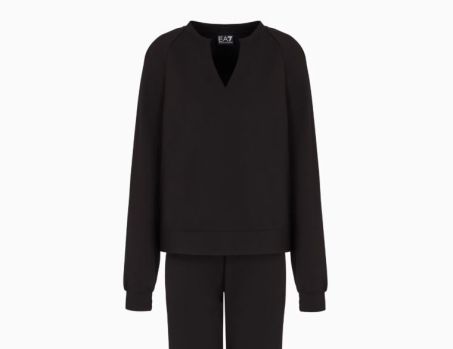 Tuta da donna Ea7 Emporio Armani composta da felpa girocollo e pantaloni joggers e fondo caviglia elasticizzato.