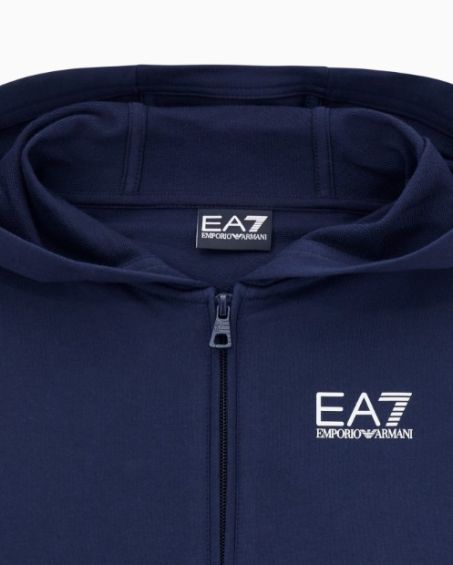 Felpa con cappuccio, chiusura con zip, due tasche laterali, logo EA7 a contrasto sul petto e dettagli in maglia elasticizzata