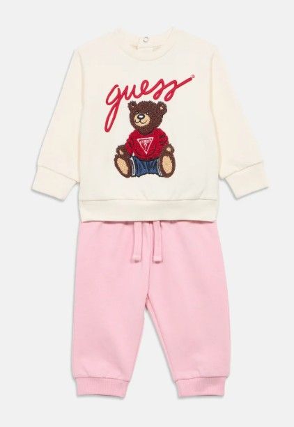 Tuta Guess bambini composta da felpa a girocollo con maxi logo centrale e pantalone comodo con polsino