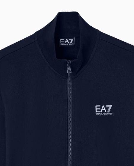 Felpa con collo montante, chiusura con zip, due tasche laterali a filetto, logo EA7 a contrasto sul petto