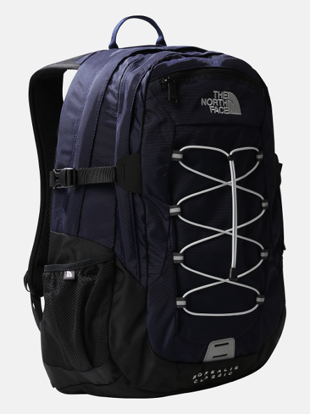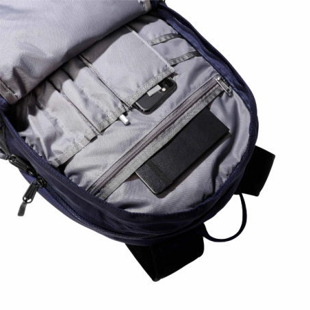 Zaino Borealis The North Face 28 litri di capienza, dotato di uno scomparto separato protetto per laptop, un pannello portaoggetti, tasche con cerniera, due tasche esterne portaborraccia, di cui una con accesso rapido allo smartphone per sfilarlo senza togliere lo zaino, una tasca esterna antigraffio foderata in pile per gli occhiali da sole, sistema di sospensione FlexVent che è costituito da spallacci flessibili stampati a iniezione, un comodo pannello imbottito posteriore in rete e un pannello lombare traspirante, riflettori per offrire una elevata visibilità.